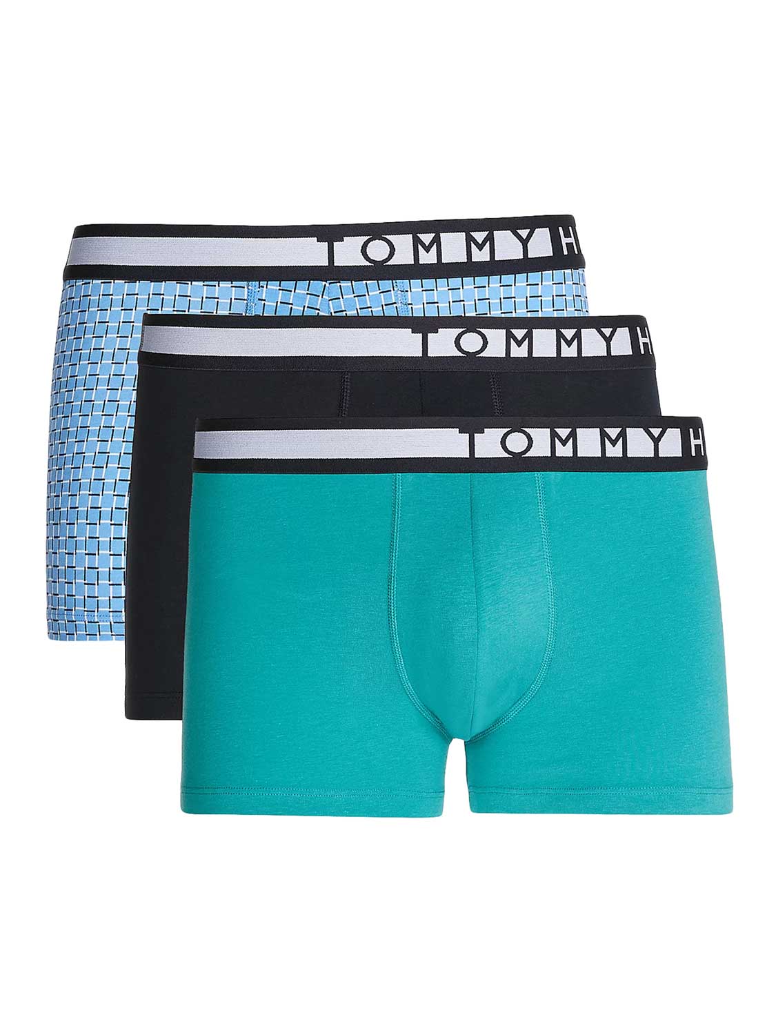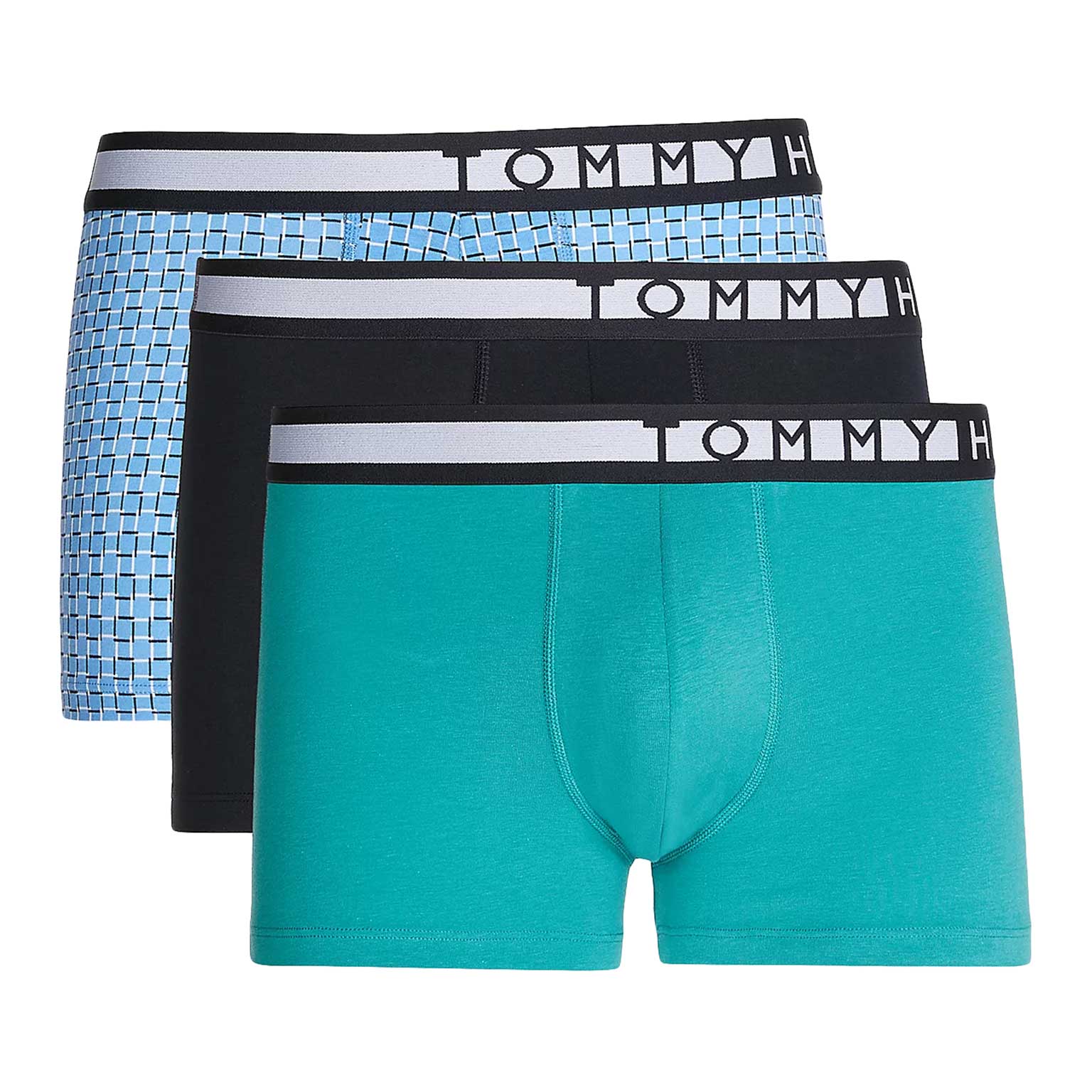 Deze set van 3 boxershorts zijn gemaakt van stretch katoen, beschikbaar met 3 boxers ieder in een eigen kleurstelling/print. De boxers zijn uitgevoerd in een trunk model en kenmerken zich door Tommy Hilfiger branding.