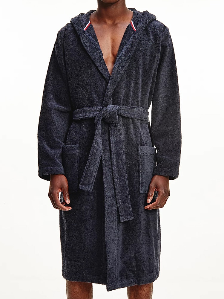 Luxe badjas van strikceintuur en Tommy Hilfiger logo op de capuchon. Met deze badjas kun je comfortabel de dag beginnen of een dag in de sauna doorbrengen. De badjas is gemaakt van 100% biologisch katoen waardoor deze uitstekend vocht opneemt.