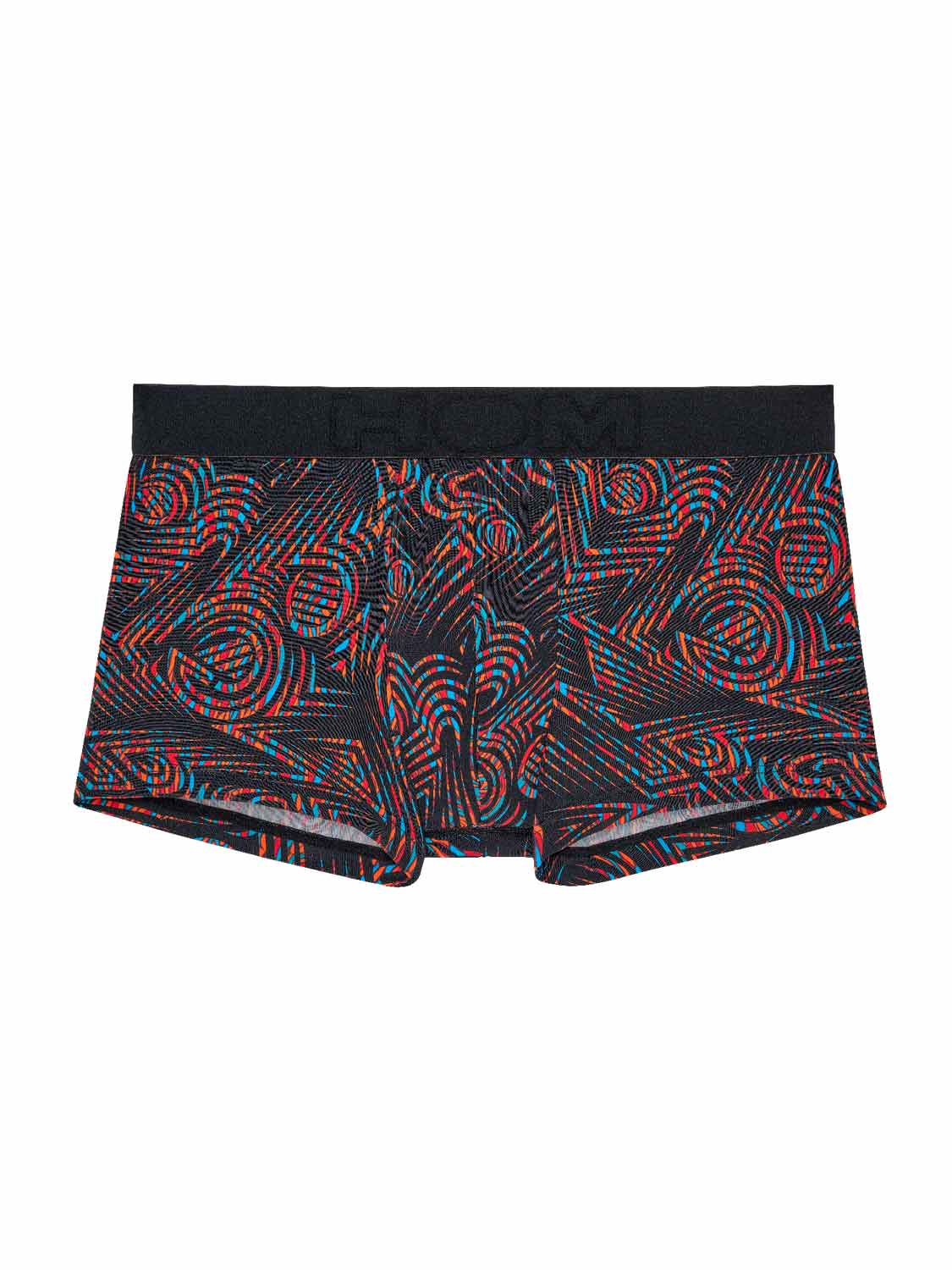 De Tanzania - Trunk is gemaakt van een comfortabele microfiber. De Tanzania heeft een opvallend speelse print met meerkleurige motieven op en een zwarte achtergrond. De elastische heupband is tevens uitgevoerd in de kleur zwart en gemaakt van katoen met daarop het HOM Logo in ton sur ton.