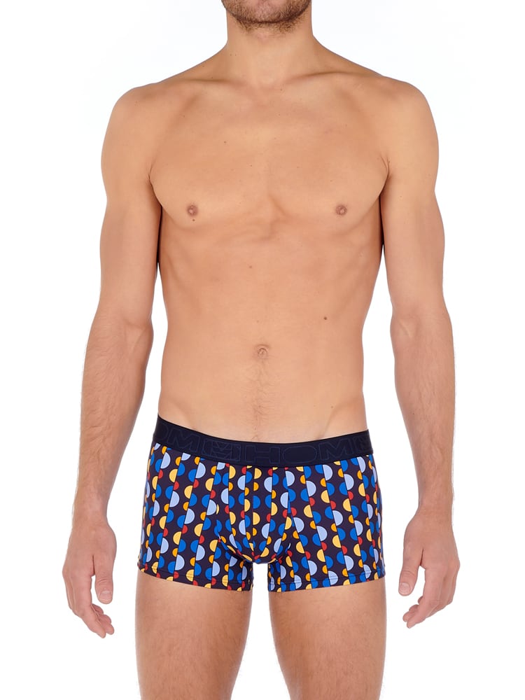 De Twist - Trunk is gemaakt van een comfortabele microfiber met een speelse look met verticale banen van een kleurrijk polka dot patroon op een marine kleurige achtergrond. Doordat deze heren shorty is gemaakt van microfiber droogt deze snel en voelt de trunk zacht aan. Microfiber is slijtvast en flexibel en daardoor ook bijzonder geschikt om te dragen tijdens het sporten.