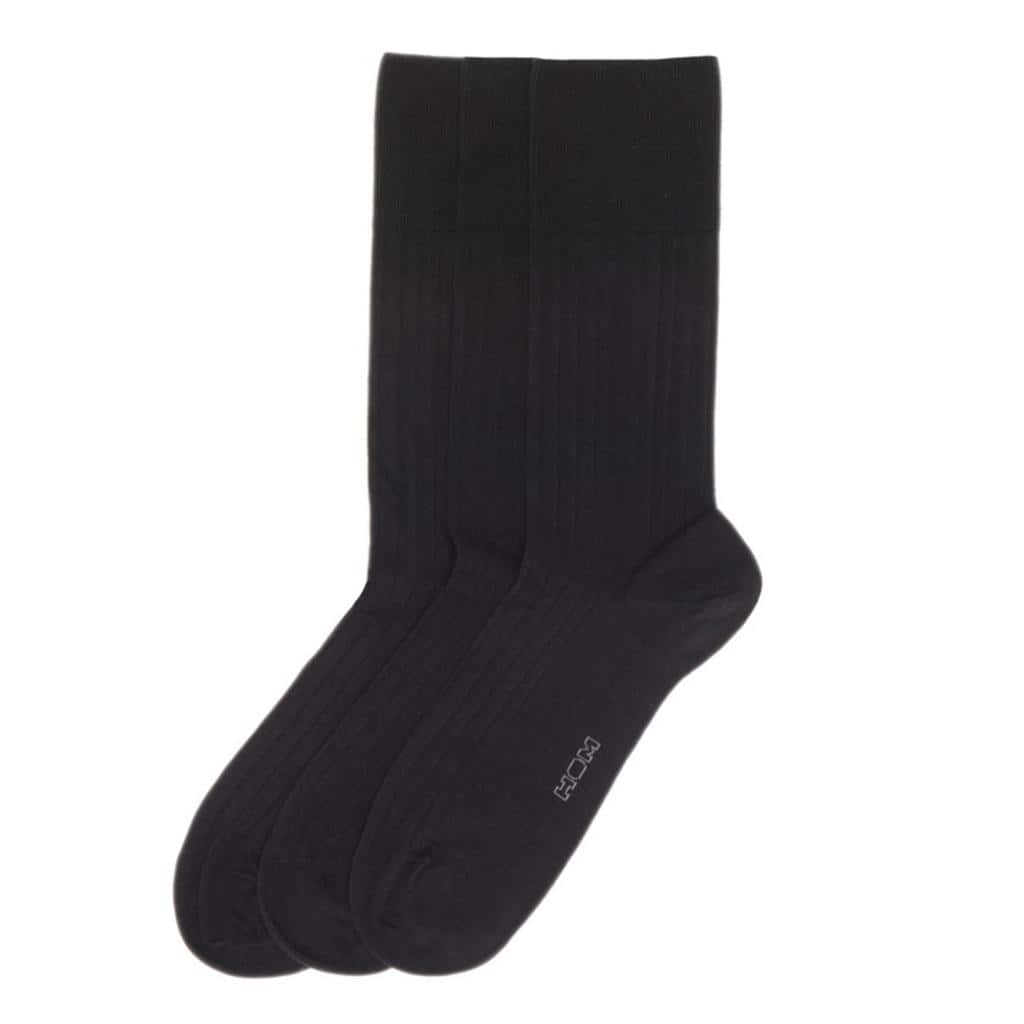 Voordelige set herensokken. De set sokken bestaat uit drie paar sokken in 3 tinten, zwart, donker grijs en licht grijs. Ze dragen het HOM-logo onder de voet. De bovenkant van het bovenwerk heeft een geribbelde afwerking voor compressievrije ondersteuning op het been Deze katoenen sokken dragen door de toevoeging van de polyamide verkoelend aan de voet en omdat de uiteinden van de sokken met de hand gestikt zijn beschikt deze over en platte naad voor optimaal draagcomfort.