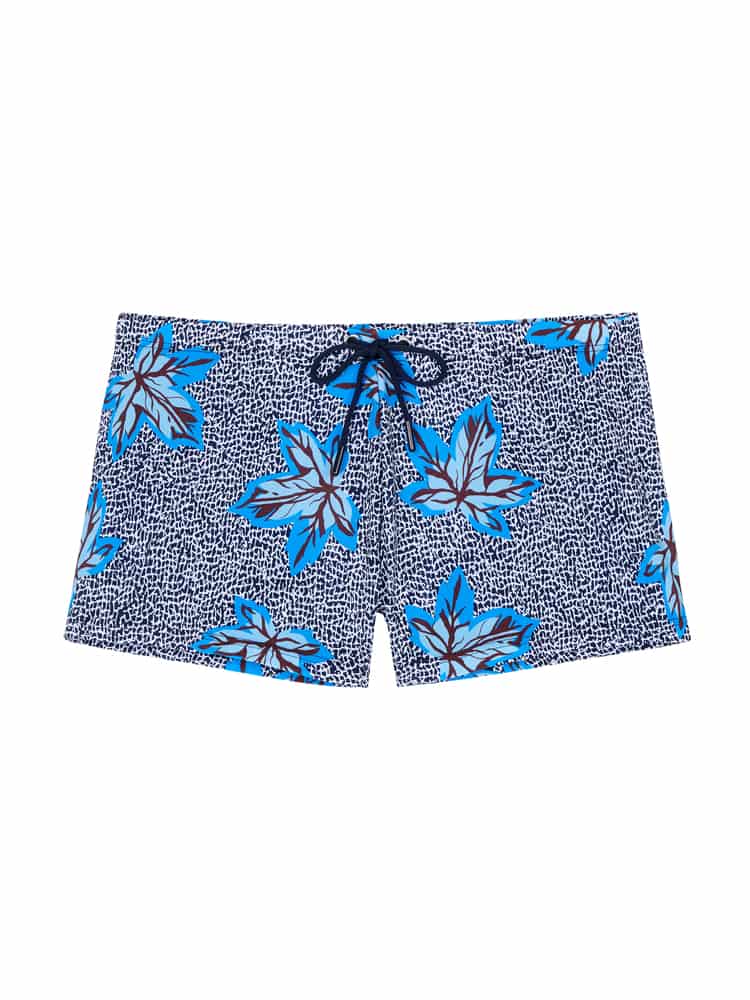 Het Sekou Zwemshort is uitgevoerd met een sierlijke bladerprint op een marine kleurige achtergrond. De strakke zwemboxer heeft een trekkoord aan de buitenzijde verwerkt in de heupband waarmee je deze perfect op maat kunt brengen voor een comfortabele fit. Perfect voor in het zwembad of op het strand.