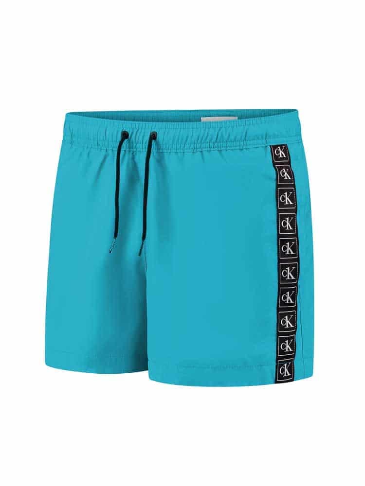 Zwemshort met medium lengte van Calvin Klein met CK One logo Tape op de linker en rechterzijde voor die klassieke look. Het zwemshort is gemaakt van 100% gerecycled polyester, wat ook nog eens snel droogt na een frisse duik. In de elastische tailleband bevindt zich een trekkoord om het zwemshort perfect op maat te brengen!