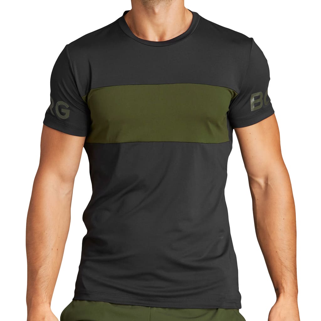 Björn Borg T-shirt gemaakt van zacht, comfortabel en rekbare microfiber op basis van gerycled polyester, met een 'regular' fit. Perfect voor iedere training waarbij het shirt je de bewegingsvrijheid geeft die je nodig hebt, niet alleen door de flexible microfiber stof, maar ook door een bredere mouwinzet. Daarnaast voelt microfiber koel aan en drijft vocht goed af, waardoor het shirt niet tegen je lijf blijft plakken zoals bij organische stoffen. De achterzijde van het shirt is langer uitgevoerd en het shirt kenmerkt zich door het Borg logo op de mouwen en een horizontaal panel op de borst in contrastrerende kleur.• Gerecycled polyester• Langer model met langere achterzoom• Bredere mouwinzet• Inzetpaneel onder de mouwen• Borg-logo op de mouwen