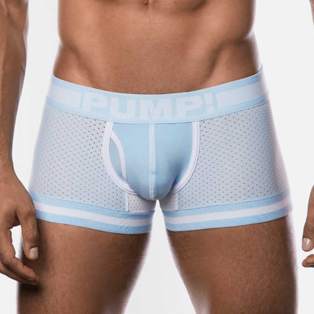 De Touchdown Boxer heeft een stoere slankmakende pasvorm. De Touchdown is gemaakt van een verkoelende microfiber en uitgevoerd met een lage snit en rondom een sportieve mesh. Daarnaast zorgt de zachte cup, gemaakt van katoen, voor optimaal comfort. De Touchdown boxer heeft een kenmerkende PUMP! heupband van 4,5cm hoog en elastische biezen voor de meest comfortabele fit. Deze boxer is precies wat je nodig hebt als jij aan de top wilt eindigen. De Touchdown Frost is uitgevoerd in de kleur baby blue met witte contraststiksels.