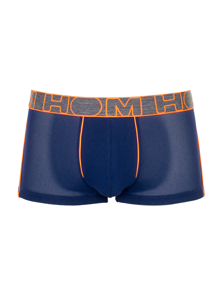 De Bodyfit is verkrijgbaar in een opvallend marineblauw, met bijpassende oranje stiksels. Het HOM-logo is rondom de tailleband weergegeven in oranje, op een grijze elastische tailleband. De stevige tailleband houdt deze trunks perfect op hun plaats, ongeacht de activiteit.