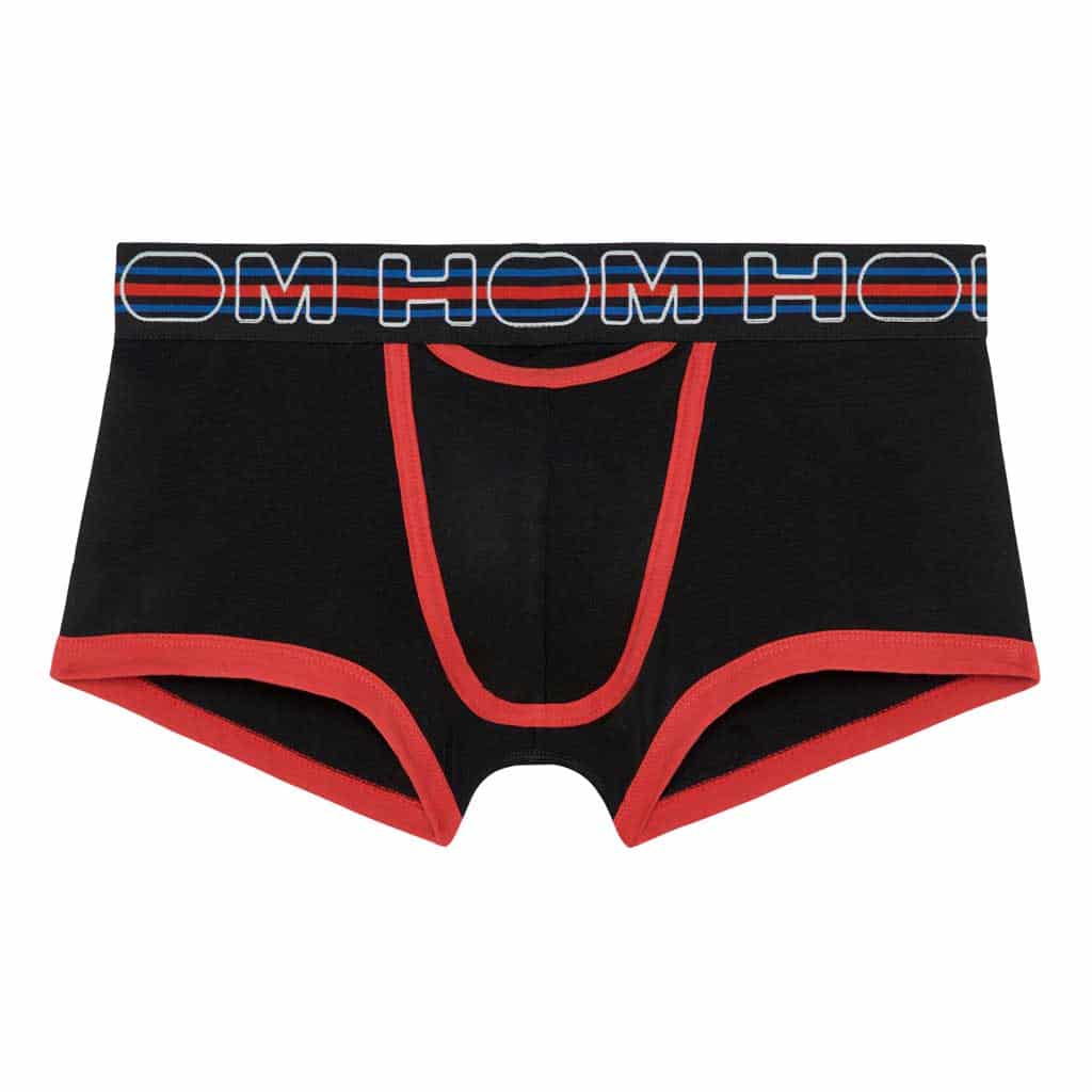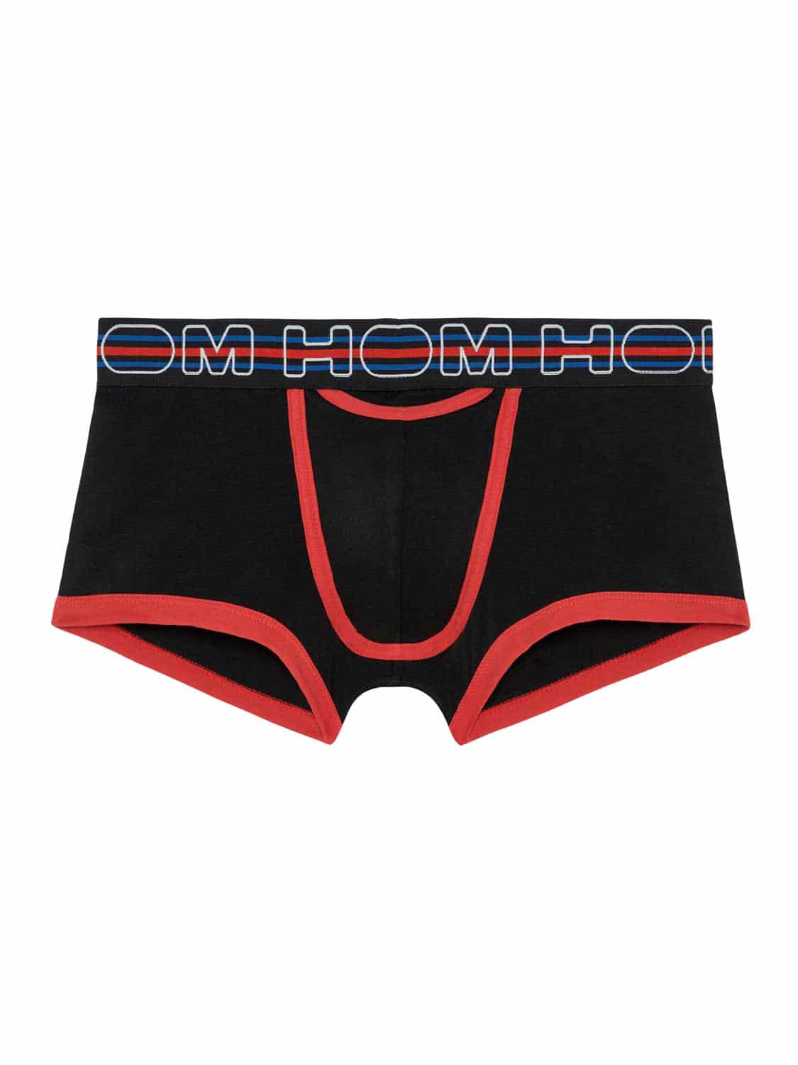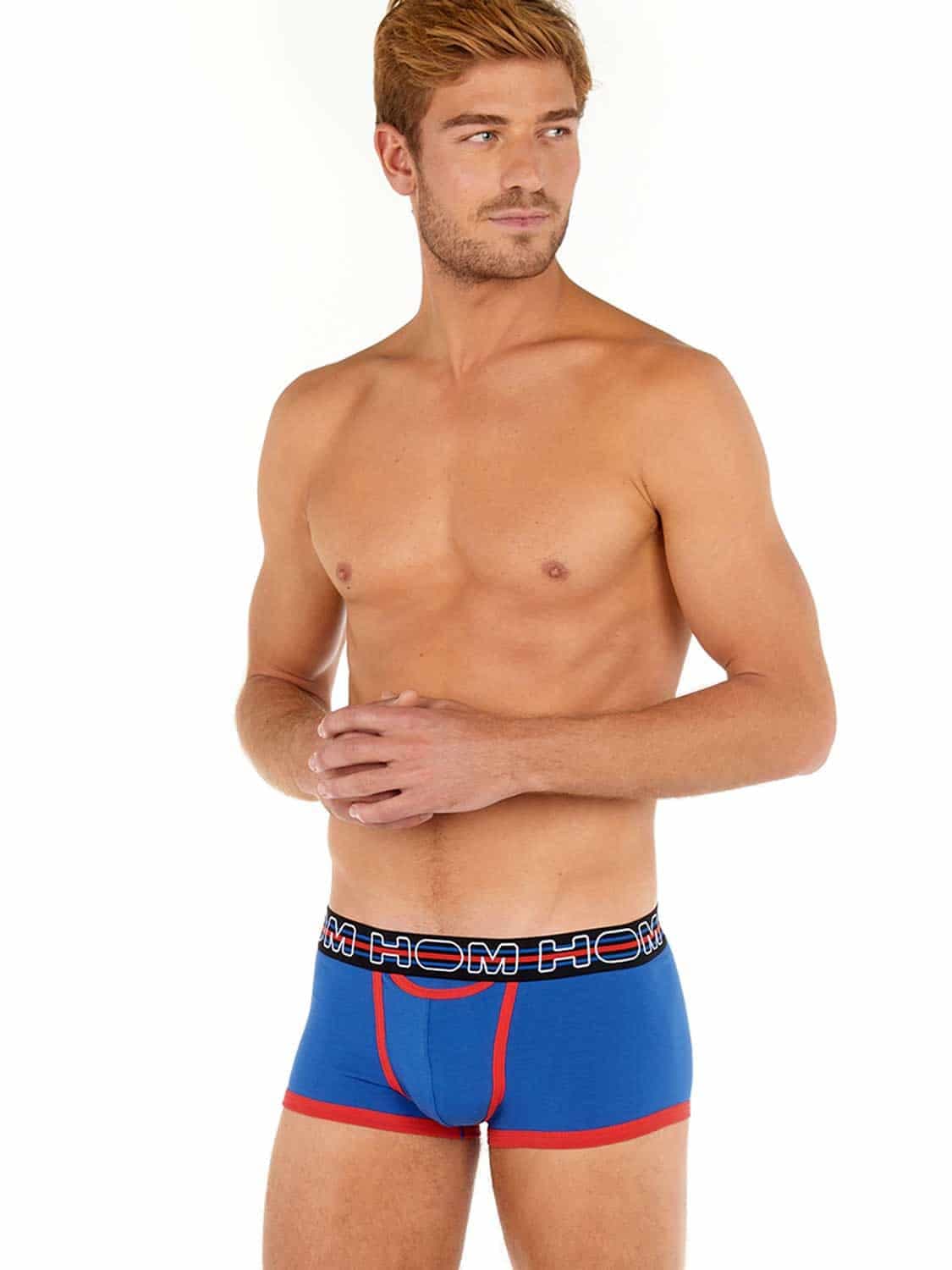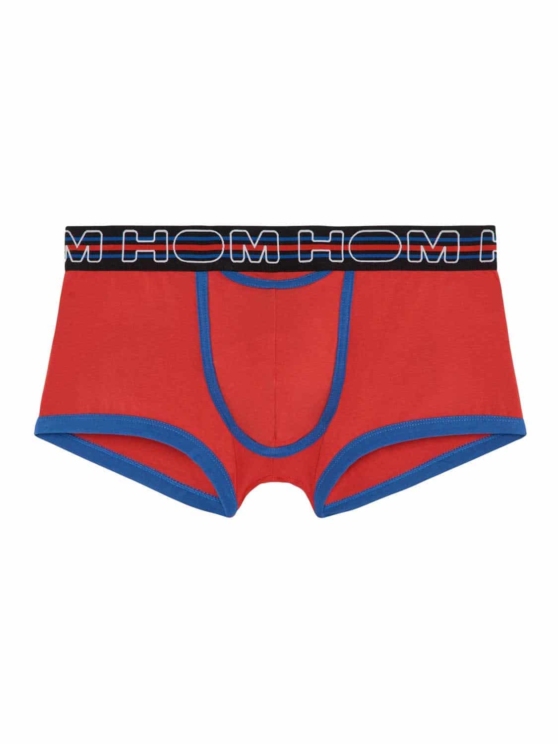 De Cotton Up HO1 Trunk is gemaakt van organisch stretch katoen en verkrijgbaar in de effen kleuren blauw, rood en zwart, uitgevoerd met smalle lijnen in een contrasterende kleur waardoor deze shorts een moderne en casual look hebben. Deze nieuwe stijl is uitgevoerd met de bekende horizontale opening voor extra gemak, uniek voor het trunk model. Omdat de shorts zijn gemaakt van katoen zijn ze aangenaam om te dragen, nemen ze goed vocht op en zijn de shorts makkelijk te reinigen. De "push-up"-pouch aan de voorzijde verstevigd de kwaliteit van de ondersteuning in zijn geheel en benadrukt subtiel de mannelijke anatomie.De elastische tailleband is zwart, versierd met rode en blauwe bayadère en is voorzien van het HOM-logo.
